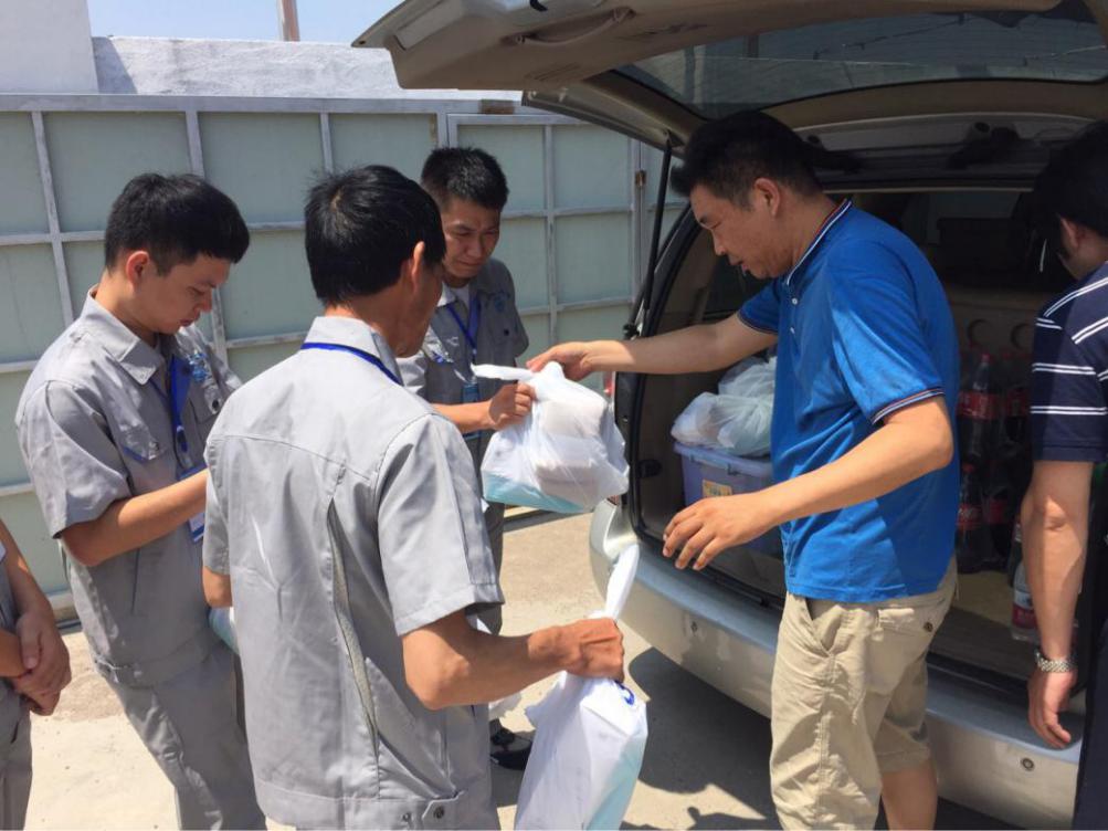 八月,正值酷暑當(dāng)頭,寧波地區(qū)的最高氣溫已多日持續(xù)續(xù)攀升至38℃以上。農(nóng)村電氣化研究所領(lǐng)導(dǎo)謝益民副書記、王林軍主任等一行在亞太監(jiān)理公司任蘇明總監(jiān)的陪同下,于2017年8月3日,前往寧波杭州灣新區(qū)基礎(chǔ)預(yù)處理工程監(jiān)理部,深入施工現(xiàn)場(chǎng),查看工地的進(jìn)展情況,并慰問奮戰(zhàn)在施工現(xiàn)場(chǎng)的一線監(jiān)理人員。 謝益民副書記一行查看工地后認(rèn)真聽取了監(jiān)理部負(fù)責(zé)人的工作匯報(bào),對(duì)工作提出了幾點(diǎn)要求:首先是堅(jiān)定不移的抓好安全生產(chǎn)工作,日前正是高溫季節(jié),天氣炎熱,監(jiān)理人員在工地現(xiàn)場(chǎng)旁站或巡視時(shí)尤其需要注意防暑降溫問題,做好自身安全工作。然后是在安全生產(chǎn)的基礎(chǔ)上抓好施工質(zhì)量管理工作,特別強(qiáng)調(diào)監(jiān)理工作的責(zé)任與職責(zé)。再就是要抓好工程進(jìn)度,將制定好的各階段施工進(jìn)度計(jì)劃落實(shí)到位。最后所領(lǐng)導(dǎo)親切與監(jiān)理部員工一一握手問候,并將高溫慰問品分發(fā)至每個(gè)員工手中,還開心的與監(jiān)理部全體人員頭頂烈日合影留念,給大家留下了難忘的回憶。 所領(lǐng)導(dǎo)對(duì)公司員工的關(guān)心及問候,讓員工倍感親切和溫馨,并對(duì)謝書記一行表示感謝,大家紛紛表示堅(jiān)決執(zhí)行公司的工作安排部署,確保工程在安全施工的前提下,保質(zhì)、保量、按時(shí)完成項(xiàng)目工程建設(shè)目標(biāo),為公司及社會(huì)作出更多的貢獻(xiàn)。