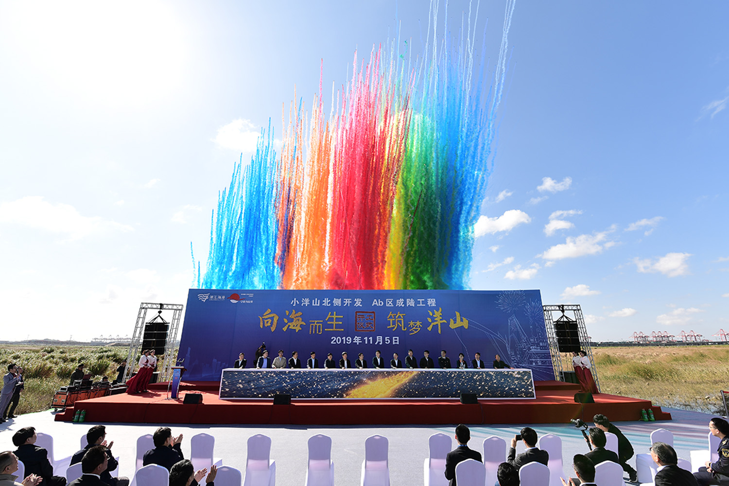 2019年11月5日,小洋山圍墾一期工程Ab區(qū)海堤提標(biāo)及場地吹填工程舉行開工儀式,我單位作為施工監(jiān)理中標(biāo)單位參加儀式。